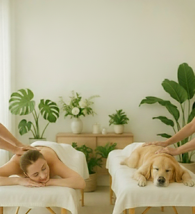 - Partagez un moment unique avec votre animal dans la même pièce, côte à côte. Pendant que vous recevez un massage relaxant, votre compagnon profite lui aussi d’un soin adapté à ses besoins. Un véritable instant de détente à deux, pour harmoniser vos énergies et renforcer votre lien affectif.